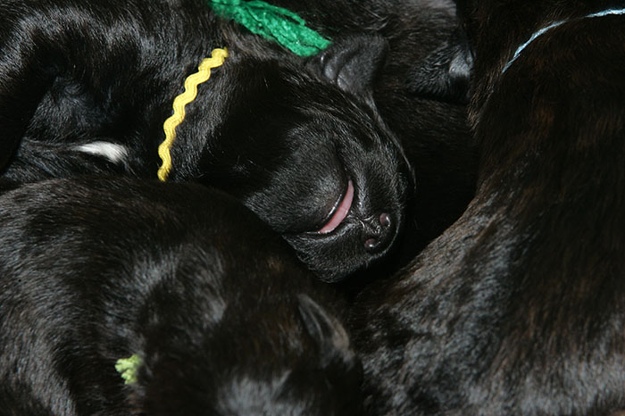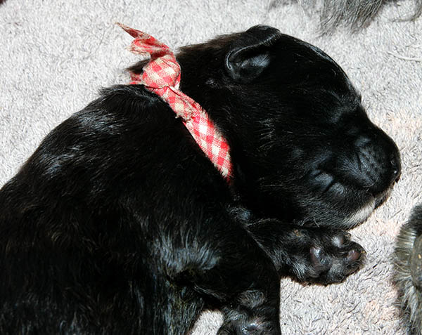 When Yellow puppy isn't screaming his head off for milk, he's sound asleep.