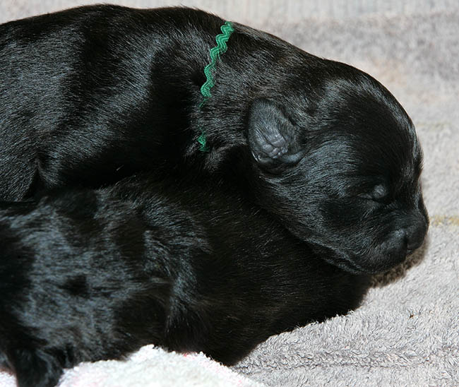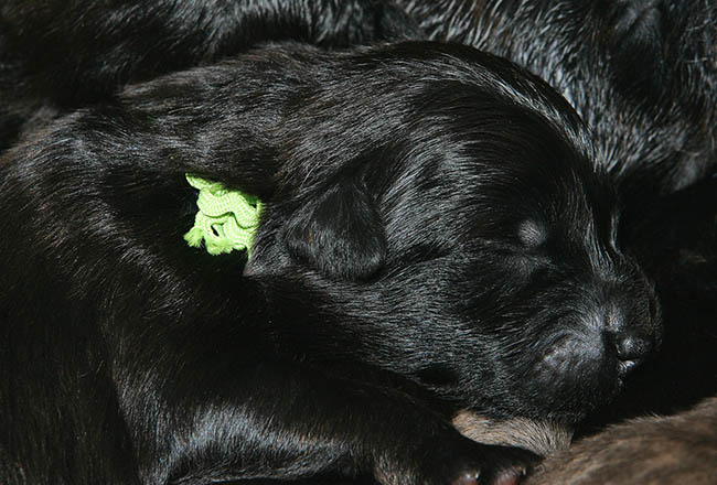 Mr. Dark Green was the first puppy to climb Blanket Mountain and take a swan dive out of the pool. He was only four days old at the time, but was not phased in the least.
