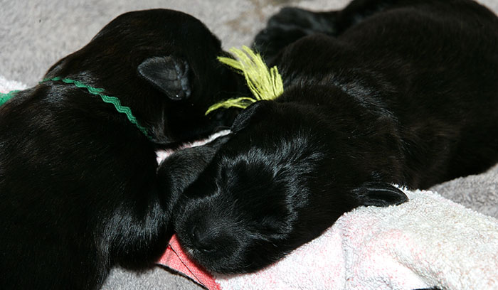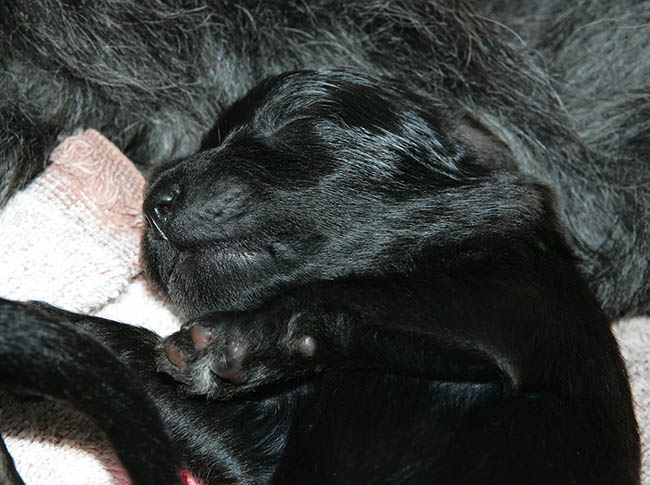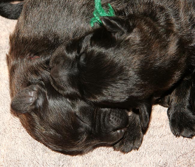 When our first litter was born, the puppies came equipped with little pink kitty cat noses that darkened over time. I remember making a joke about the Lee Press on Nose Fairy had finally come to visit.