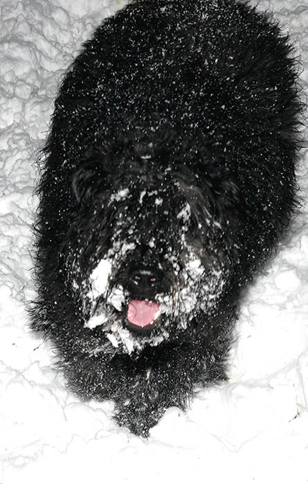 Well, our youngster, Wagner, got a chance to see his very first snow. The Portland area got a surprise snow storm the end of Dec. and most of what fell came down West of Portland, which is where we live. We got about 5 to 6" of the stuff in a afternoon. Sue was planning on going to the store and didn't want Frank to get all wet and messy so the patio door was closed. Once she realized how much snow was on the road, she decided not to go. When I opened the patio door, Wagner was the only one that went out. I don't think he hesitated for more than a second and it was love at first sight, because he was out in the snow running back and forth kicking up snow balls and chasing them. I yelled for Sue to come take a look and I grabbed my camera. It was getting dark and my flash batteries were getting low, so these were just grab shots when Wagner slowed down a bit. But it gives the idea of how much fun he was having.