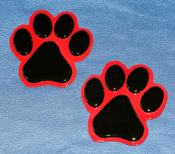 I finally got around to finishing the last 2 paw coasters I started, this time I did them in a red base. I've always thought red and black went well together although I was afraid the red glass I used wasn't going to be red enough. I was glad to see that after it was fired it turned a bit redder than it was un-fired.