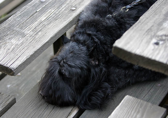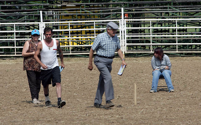This is Frank, waiting his turn (you can almost see him thinking "Oh hurry up already" ![]() ![]() Sue and Franking starting the test... ![]() This is the judge (the older gentelman in the hat) and part of the crew... ![]() Here is Frank going up to one of the young girls that played the friendly greeter... ![]() ![]() ![]() Here's the second friendly greeter... ![]() Going up to one of the blinds (que the scary music)... ![]() He dumps some rocks into a bucket... ![]() ![]() Frank was hoping for lunch...