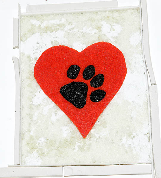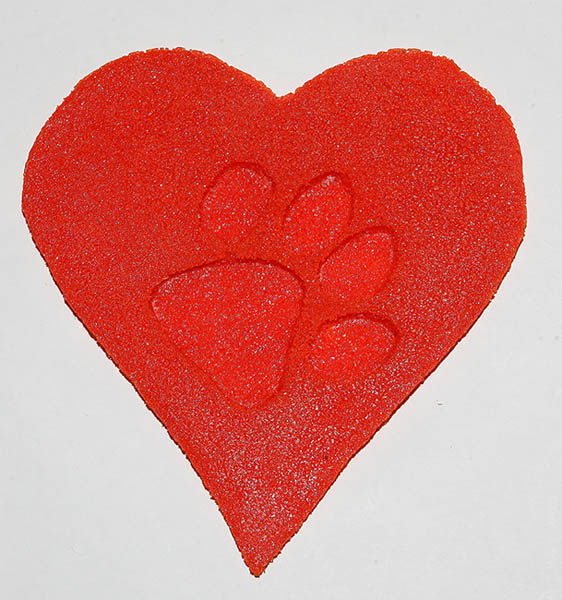 This is the heart that I put the Pimento Red all over the fiber paper paw. The fiber paper didn't stick to the frit and after I pulled it out, I had this nice clean impression.